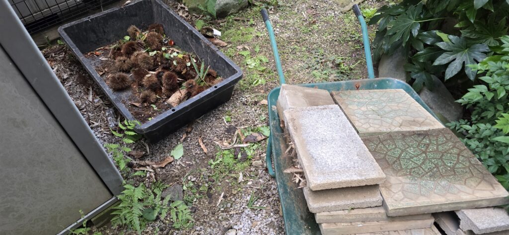 | 回収品目 | 砂利園芸用品栗のイガ土土の入ったプランター砂ガーデニング道具石金属製の脚立工具古い家電枝木落ち葉コンクリートブロック伐採した生木壊れた植木鉢レンガ庭木壊れた扇風機剪定枝錆びたスコップ肥料雑草 | ||