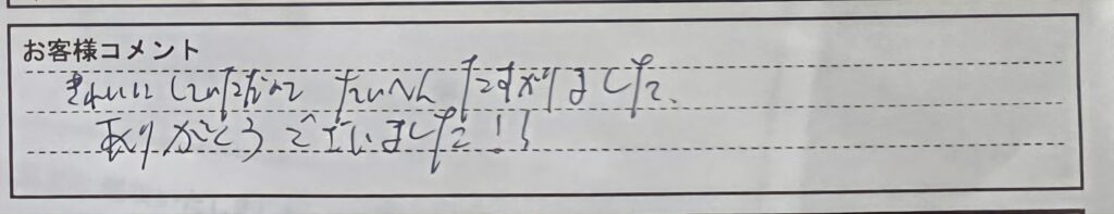 「きれいにしていただいてたすかりました。ありがとうございました。」