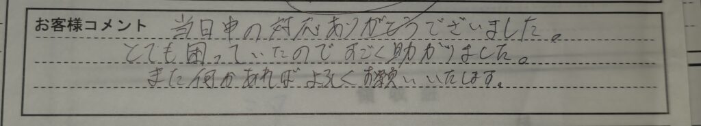 🌟🌟「当日中の対応ありがとうございました。とても困っていたのですごく助かりました。また何かあればよろしくお願いいたします。」🌟🌟