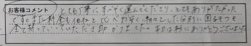 「とても丁寧にすばやく運んでくださり、とてもありがたかったです。
