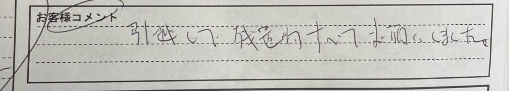 お客様から感謝のお言葉を頂きました
