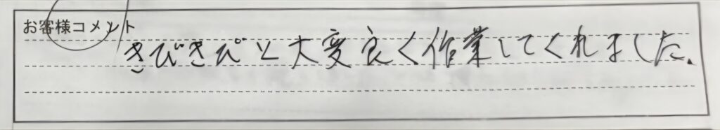 「キビキビと大変よく作業してくれました。」